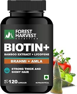 Biotin with Bamboo Extract, Lycopene, Brahmi & Amla |120 Veg Capsules | Plant-Based Formula