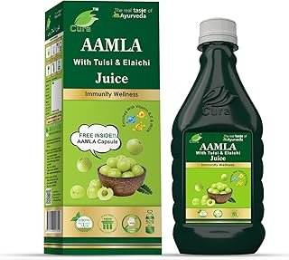 CURA AYURVEDIC AAMLA RAS WITH TULSI & ELAICHI II FREE AMLA CAPSULES II Natural Immunity Booster II Strong & healthy hair II Source of Vitamin C II 500ml