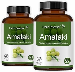 Herb Essential Amalaki (Indian Gooseberry) Tablets 500 mg, 120 Tablets | Promotes Healthy Hair, Skin, Digestion,Immune System Boost