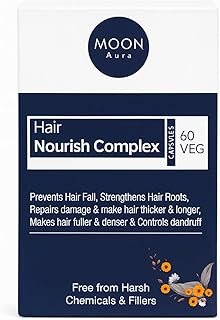 Moon Aura Hair Nourish Complex | Biotin for Hair Growth with Amla, Silica, Vitamins, Amino Acids | Hair Supplement for Women & Men | Strengthens Roots, Reduces Hair Fall | 60 Veg Capsules