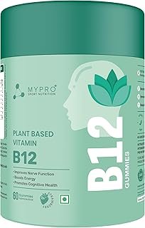 Mypro Sport Nutrition Plant Based Vitamin B12 Gummies | With Moringa, Amla Spirulina With 9 Herbals Extract |Nervous System Support | Boosts Energy | for Men & Women Strawberry Flavour-60Gummies