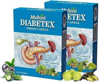 Multani Diabetex Strong Capsule | Useful In Blood Sugar Control | Enriched with Jamun, Giloy, Amla & Other Ayurvedic Products | Ayurvedic Sugar Management Medicine | 60 Capsules 30 * 2 (Pack of 2)