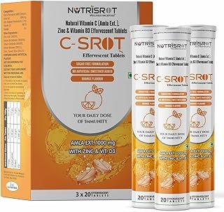 NUTRISROT̖ C-SROT̖ Effervescent Tablets with Vitamin C (as Natural Amla Extract), Zinc & Vitamin D3 – Antioxidant- Immunity Booster- Skincare in Orange Flavour (60 tabs)