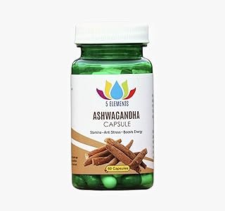5 Elements Ashwagandha Capsules , 500mg Ashwagandha roots powder, Energy & immunity Booster, Helps relieve stress & anxiety
