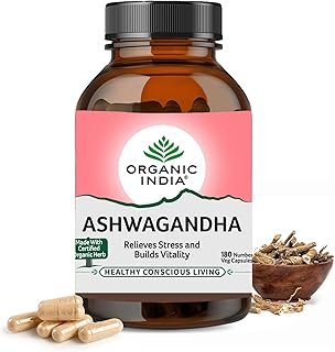 A TATA Product – Organic India Ashwagandha Capsules – 180 Veg Caps, Vitality & Relieves Stress, Naturally Boosts Energy & Stamina, Improves Immune System, GMP & NPOP Certified Organic