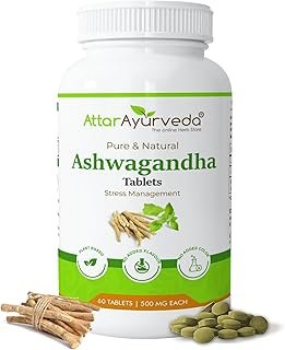 Attar Ayurveda Ashwagandha tablet (500mg) – 60 tablets | General Wellness | Stress Relief | Improves Strength and Energy | Pure and Natural