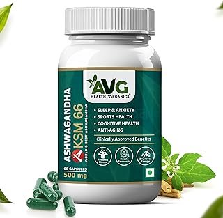 AVG Health Organics Ashwagandha KSM-66 (500 mg) | For More Strength and Stamina | Stress Relief & Immunity Boost | Improve Sleep & Brain Health | Withania Somnifera Extract – 60 Vegetarian Capsules