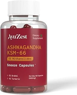 AyuZest Ashwagandha KSM-66 Snooze Capsules 6000mg – Sleep Support & Stress Reduction, Promotes Relaxation & Recovery, 60 Count (Pack of 1)