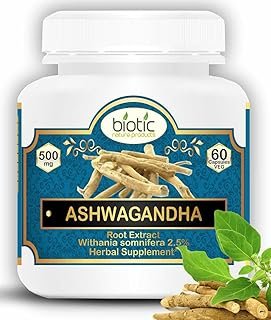 Biotic Ashwagandha Capsules 500mg – Ashwagandha Supplements for Men and Women – Aswagandha Root Extract – 60 Veg Capsules