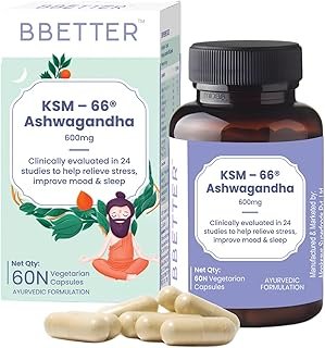 BBETTER Ashwagandha KSM 66 Capsules 600mg | Lab Tested | Lab Report Attached | Ashvagandha Tablet For Stress, Sleep Management & Anxiety Relief | Rejuvenates Mind & Body | 60 Veg aswagandha Capsules