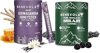 Benevola KSM-66 Ashwagandha Honeystick 30N & Himalayan Shilajit Gummies 400mg 60N | Energy, Stress Relief & Vitality Booster
