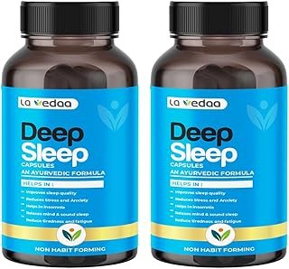 Deep Sleep Capsules Pack of 2| Ayurvedic Herbal Sleep Supplement for Men & Women with Valerian Root & Ashwagandha | Non-Habit Forming | 60 Veg Capsules