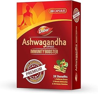 Dabur Ashwagandha Capsules Immunity Booster – 20 Capsules | 100% Ayurvedic | Relieves Stress & Increases Stamina | Immunity Booster