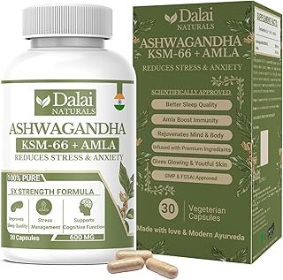 Dalai Naturals Ashwagandha KSM 66 600mg with Amla | Scientifically Approved Ashwagandha Tablets For Stress & Anixety Relief, Improves Sleep Quality, Rejuvenates Mind & Body, Ahswagandha Capsules 30Veg