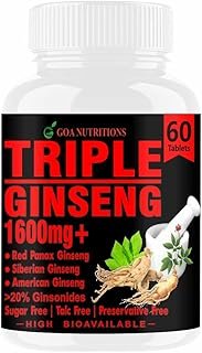 Goa Nutritions Red Ginseng Powder With Korean Panax, American, Siberian Root Extract, Ashwagandha & Ginkgo Biloba Supplements Natural Multivitamin For Men – 60 Tablets (Pack 1)