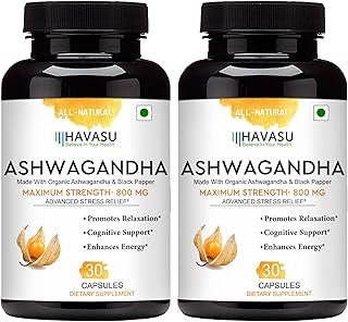 HAVASU Organic Ashwagandha Root with Black Pepper Capsules – 30ct – 800mg, Natural Stress & Mood Relief, Sleep Aid & Thyroid Support Supplement, Ayurvedic Nootropic for Focus & Energy (Pack 2)