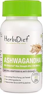 Herbadiet Ashwagandha Root Extract 60 Capsules|Max Strength 7500Mg Equivalent Per Capsules|Energy&Focus Support Supplement