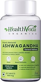 HEALTH VEDA ORGANICS PRIVATE LIMITED Ashwagandha 1000Mg | High Strength Potent Formula | Boosts Immunity & Energy | Rejuvenates Mind & Body | 60 Veg Tablets | For Both Men & Women