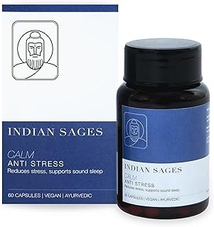 Indian Sages CALM Ashwagandha Anxiety Relief Ayurvedic Capsules – Anti Stress | Organic Ingredients from Himalaya | Ashwagandha and Brahmi | Ideal for men and women with depression | 60 Caps
