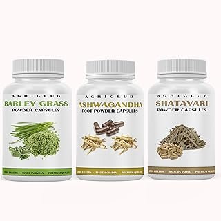 Immunity Booster Barley Grass Powder Capsule, Ashwagandha Root Powder Capsules, Shatavari Powder Capsule, Each 60-60 Tablates