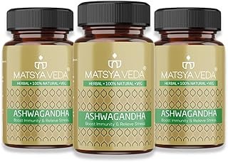 Matsyaveda Ashwagandha Capsules to Enhance Immunity || Reduce Anxiety & Stress || Boost Energy & Endurance (Pack of 3, 180)