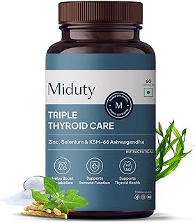 Miduty Triple Thyroid Care Supplement – Rapid Action Formula | KSM-66 Ashwagandha,Sea Kelp, Zinc,Selenium,L-Tyrosine | Supports Thyroid Health | 60 Capsules
