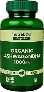 Nutrabud Organics Ashwagandha 1000mg – 180 Tablets -Stress & Anxiety Relief Ashwagandha Powder Tablets – Rejuvenates Mind & Body – Certified Organic (180 Count (Pack of 1))