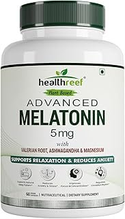 Plant-Based | Melatonin 5mg Supplement for Sleep Support | 60 Vegetarian Capsules with Ashwagandha, Valerian Root and Magnesium | Relaxation | Stress Relief | Non GMO | Gluten Free Soy Free Formula