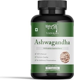 Ashwagandha Capsules 500 MG| 60 VEG Capsules, Stress reliever, Mood enhancer, Strength builder, Immunity booster
