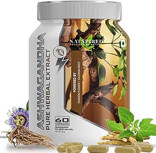 Ashwagandha Capsules | With Passion Flower, Valerian Root | Pure Herbal Extract | Helps to Boost Energy, Strength, Stamina, Stress Relief | Gluten Free | Vegetarian | 60 Capsules