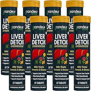 Grandeur Liver Detox Supplements, Effervescent Liver Detox Tablets with Milk Thistle, Ginseng & Turmeric — Lemon Flavor — Supports Liver Health & Detox, Boosts Immunity — 120 Sugar-Free Tablets
