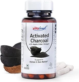 Activated Charcoal with Apple Cider Vinegar | Organic Coconut Shell Derived | Helps in Digestion, Bloating, Liver & Kidney Detox | 60 Veg Capsules