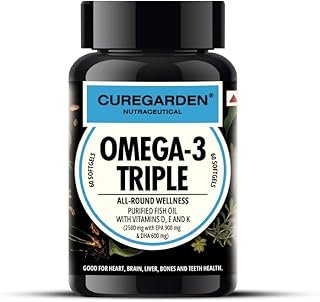 Omega-3 Fish Oil Capsules 2500mg – Triple Strength with 900mg EPA, 600mg DHA – Vitamin D, E & K – Heart, Brain Health – Boost Immunity, Metabolism & Bone Health – 60 Softgels