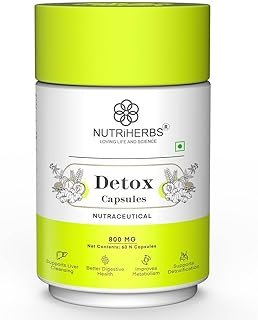 NUTRiHERBS Detox Capsules 800mg – Herbal Liver Detox & Kidney Cleanse Supplement – Natural Stomach Purifier for Full Body Detox & Immunity Boost – 60 Vegan Capsules