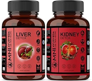 Omni Ayurveda Kidney & Liver Detox Combo – Herbal Detox Capsules with Gokhru, Varun, Punarnava & Milk Thistle Extracts | Supports Kidney & Liver Health, Detoxification & Digestion – 60 Capsules Each