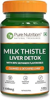 Pure Nutrition Milk Thistle Liver Detox Supplement – 120 Tablets with Silymarin Extract, NAC, Curcumin, Amla & Vitamin C | Fatty Liver Health, Detoxification & Immunity