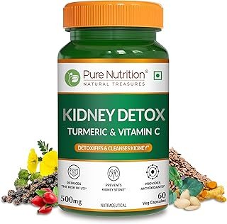 Pure Nutrition Kidney Detox Supplement | 60 Veg Capsules with Punarnava, Gokhru, Turmeric & Rosehip Extracts | Supports Kidney Health & Natural Detox | Plant-Based Formula