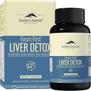 Rasayanam Liver Detox Supplement | Milk Thistle with 80% Silymarin | NAC 120mg with Kutki, Turmeric, Dandelion, Zinc & more | Supports Detox, Digestion, Energy & Daily Liver Wellness – 60 Tablets