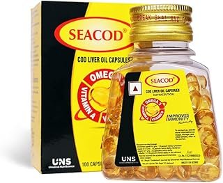 Seacod Cod Fish Liver Oil 100 softgel Capsules With Natural Omega 3, Natural EPA & DHA |Vitamin D & A | For Immune Health, Healthy Heart, Brain, Eyes, Joints & Muscles- Pack of 100 Capsules