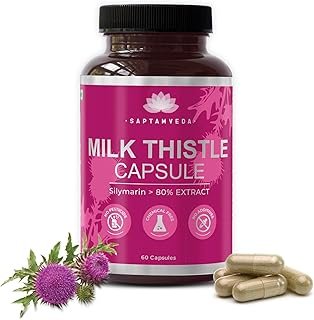 Saptamveda Natural Milk Thistle Extract with 1000mg(60 Capsules – Pack of 1) | 80% Silymarin Cleanses & Detox Liver For Men & Women, Promotes Healthy Cholesterol