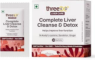 three60+ Complete Liver Cleanse & Detox | Daily detox for your liver | Helps Reduce SGOT/SGPT levels | 30 Sachets | With NAC, ALA, Dandelion & Ginger (Pack of 1)