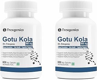Trexgenics GOTU KOLA 8% Triterpenes 500 mg Vein Health, Blood circulation, Cognitive Function, Immunity VEGAN & NON-GMO (60 Veg. Capsules) (Pack of 2)
