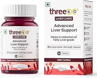 three60+ Advanced Liver Support Tablets | Daily Liver Detox & Fatty Liver Care | Clinically Proven Formula with Bhumiamalaki, Kalmegh & Kasani | Supports Liver Health & Alcohol Detox | 60 Tablet (Pack of 1)