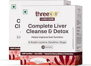 three60+ Complete Liver Cleanse & Detox | Daily detox for your liver | Helps Reduce SGOT/SGPT levels | 30 Sachets | With NAC, ALA, Dandelion & Ginger (Pack of 2)