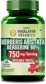 Vlado’s Himalayan Organics Berberis Berberine 98% with Milk Thistle I Berberine HCL+ Capsules 750 mg | Berberine Supplements for 2X Liver Support I Control Blood Sugar I Berberis Aristata I Cholesterol Management I, Antioxidant, Anti-inflammatory & Weight Management | Herbal Formula for Detox & Metabolic Wellness – 60 Veg Capsules