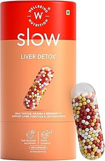 Wellbeing Nutrition Slow Liver Detox supplement with Pure Milk Thistle (80% Silymarin), Arjuna, Berberis, Detox & Digestive Enzymes| Supports Liver Health, Natural Detoxification | 60 Veg Capsules