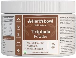 Herb’s Bowl Triphala Powder, Natural Ayurvedic Supplement for Digestion, Immunity and Detox, Vegan and Gluten-Free (100 Gm)