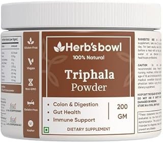 Herb’s Bowl Triphala Powder, Natural Ayurvedic Supplement for Digestion, Immunity and Detox, Vegan and Gluten-Free (200 Gm)
