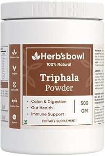 Herb’s Bowl Triphala Powder, Natural Ayurvedic Supplement for Digestion, Immunity and Detox, Vegan and Gluten-Free (500 Gm)