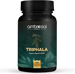 Ambrosial Triphala| Tablets Blend of 3 Natural herbs in Triphala Powder Premium Herbal Digestive Enzymes Relief from Constipation Digestion Support Colon Cleanser & Gas Relief (Pack of 1-60 Capsules)